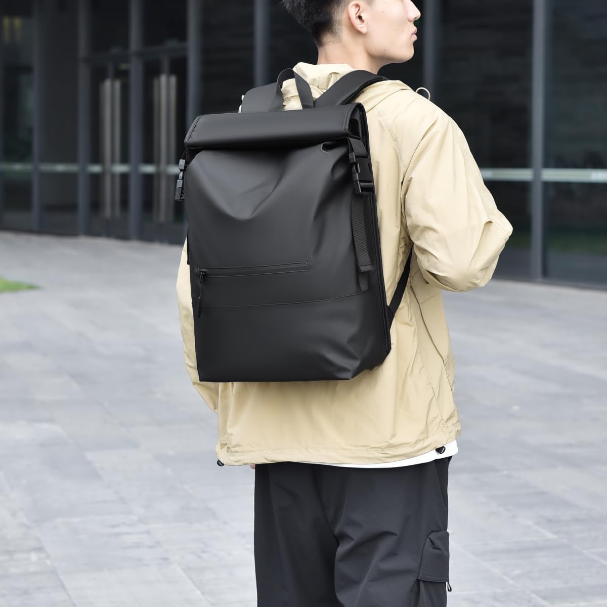 Laptop Backpack for 15.6 Inch Laptop & iPad – Water Resistant Roll-Top Design with Padded Compartment, Anti-Scratch, Front & Back Zipper Pockets, Breathable Straps for Men Women