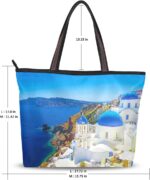 Large Women Tote Bag Greece Santorini Pattern Handbags Tote Handle with Zipper Shoulder Bag Grocery Shopping Work Bag