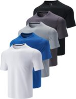5 Pack Men’s Active Quick Dry Crew Neck T Shirts | Athletic Running Gym Workout Short Sleeve Tee Tops Bulk Premium Athletic Tees for Men in Bulk Pack. Comfortable, Durable, & Stylish Value Bundle. Polyester spandex fabric provides optimal upper body comfort and minimal skin irritation. Features classic crew neck, short sleeves and elastic closure for optimal range of motion. Not too tight, not too loose. Free your upper body during every movement. Ultra-soft fabric with excellent moisture wicking ability that keeps you dry and comfort during running, jogging and biking. Soft to the touch and easy on the skin. The nonrestrictive Ergonomic design allows full range free movement while training. Durable, chafe-free flat lock seams that will last and provide minimal skin irritation and less rashes. Perfect for various outdoor & indoor sports activity. Machine wash cold recommended.