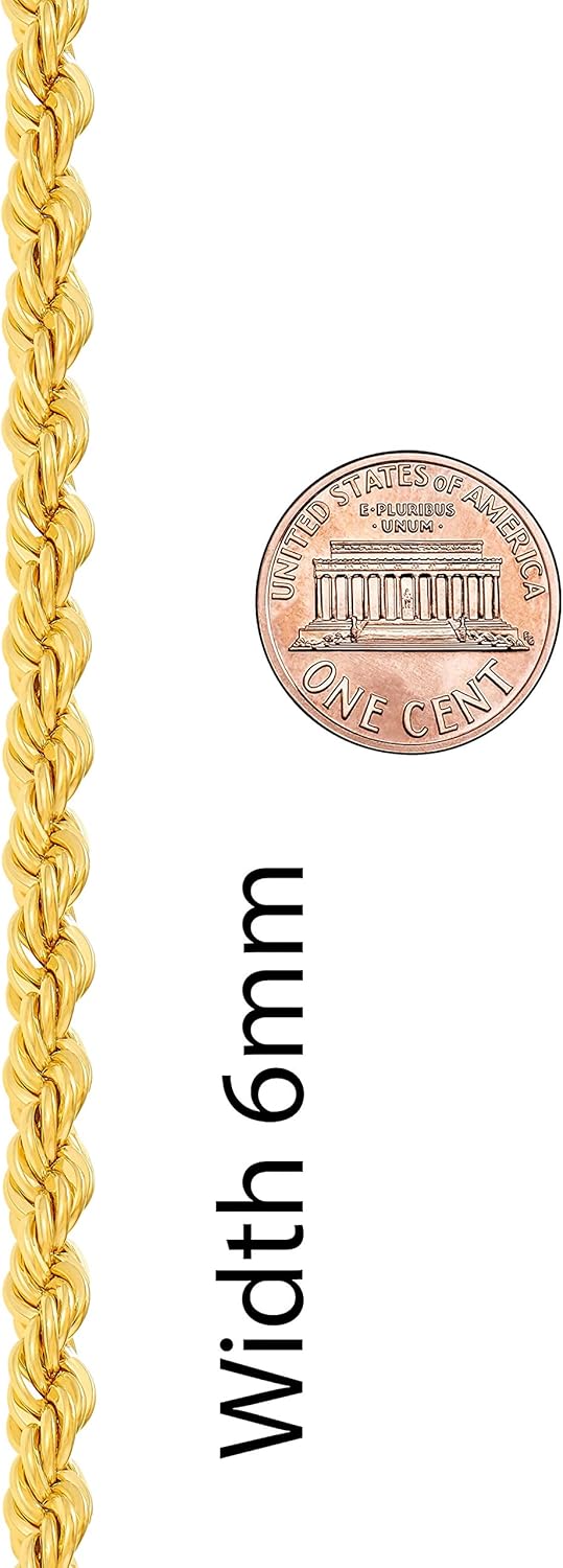 LIFETIME JEWELRY 6mm Rope Chain Necklace for Women and Men 24k Real Gold Plated