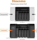 Expands to 9 Compartments: This expandable kitchen drawer organizer fits most drawer sizes with an adjustable width range of 13 – 22.4 inches. When extra space is required for larger cooking utensils, simply unfold it to expand to dimensions of 22.4″ x 15″ x 2″. When folded, it measures 13″ x 15″ x 2″.