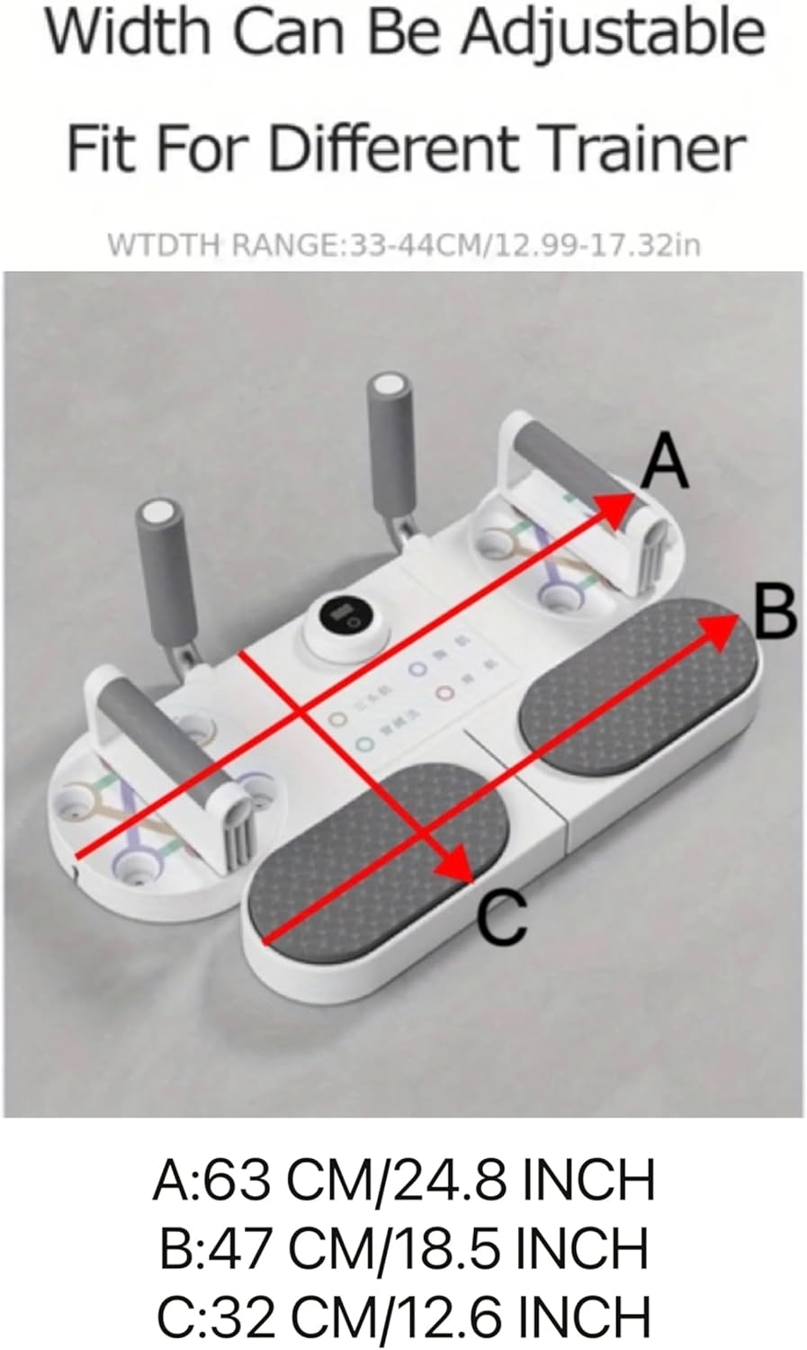 Product name: multifunctional push-up board. Product material: ABS + TPE + metal. Product size: 59 x 36 x 5 cm / 23.22 x 14.17 x 1.96 inches. Product net weight: 1600 g Product colour: white/black. Product function: plank support / push-up board / tension rope / timing / counting