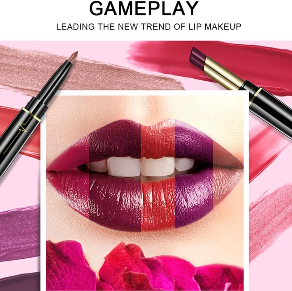 Lip Liner and Lipstick for Women, 2 in 1 Double Head Lip Liner Pencil Lipstick Long Lasting Lipstick Gift for Daily Travel