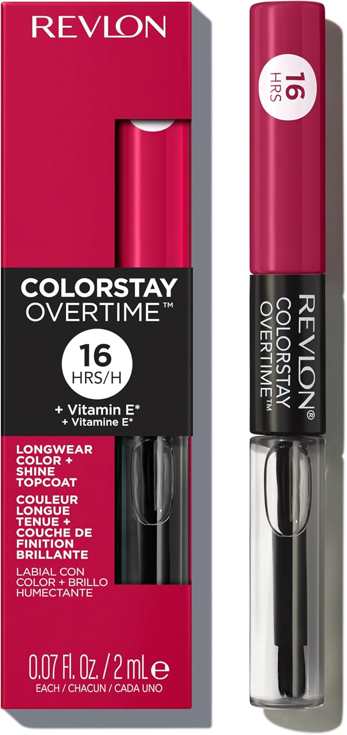 Liquid Lipstick With Clear Lip Gloss By Revlon, Colorstay Face MakEUp, Overtime Lipcolor, Dual Ended Vitamin E In Red/ Coral, Non Stop Cherry (010), 0.07 Oz