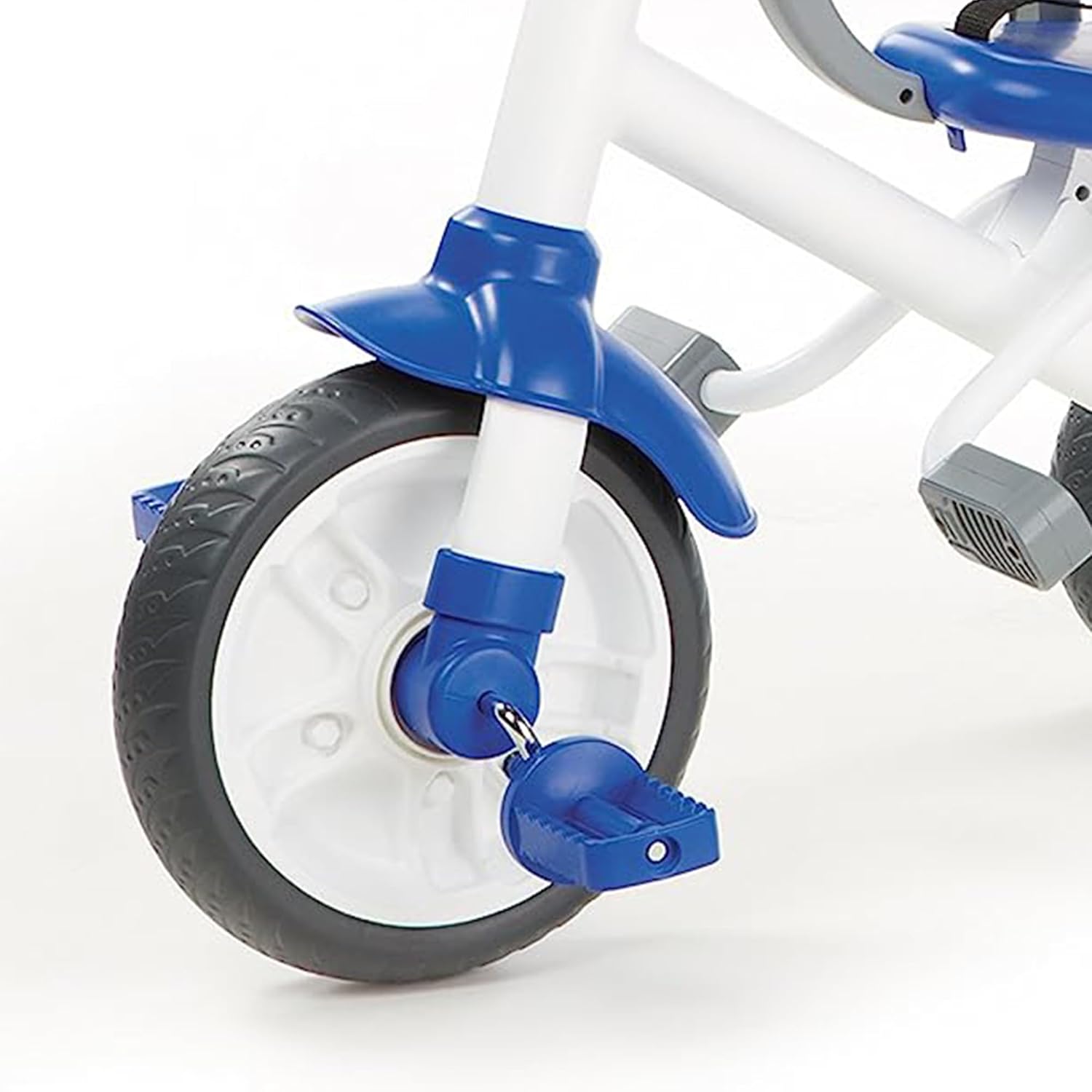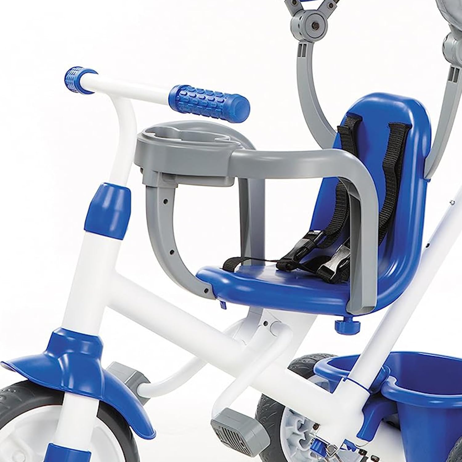 Stage 1 – Stroll (9+ months) Parents can steer the trike with the waist bar in place and the foot rest protecting the child’s feet