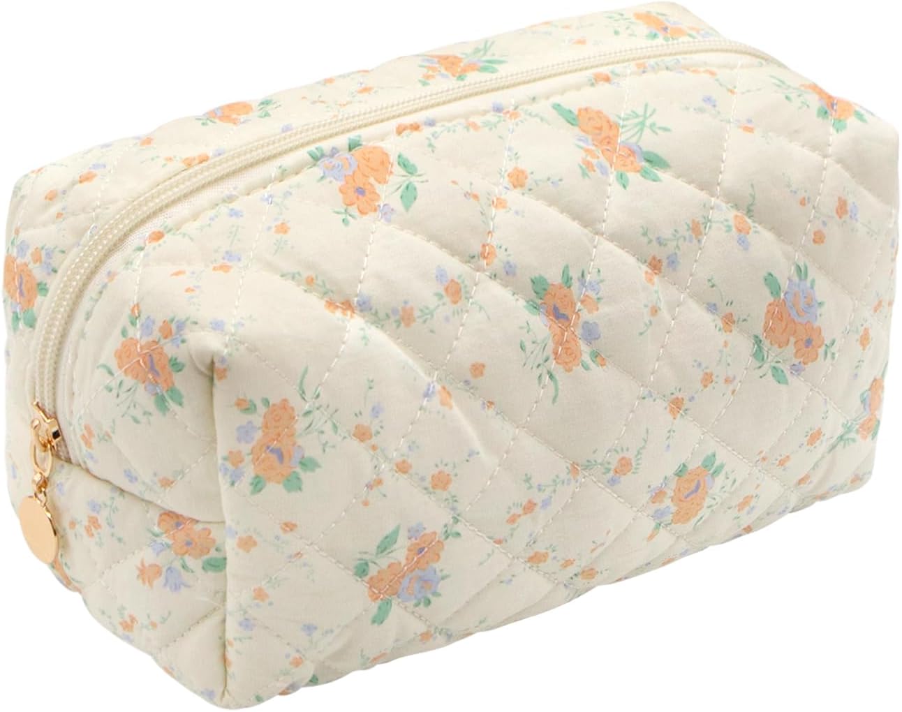 Long Keeper Cute Floral Cotton Cosmetic Bag Toiletries & Beauty Essentials Small Travel Makeup Bag Kawaii Flowers Zipper Make Up Cosmetic Pouch for Women Girls, Beige Base Orange Floral, Floral Make