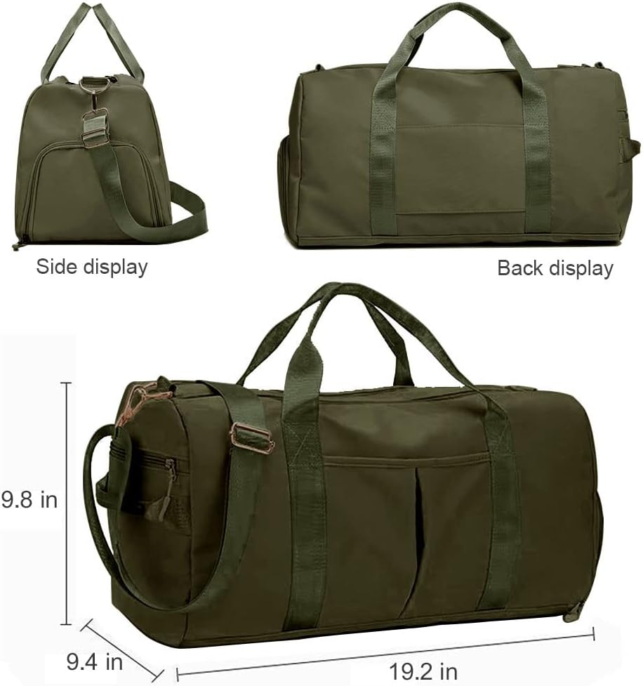 1. Three Carrying Options: over your shoulder, put on luggage or by the bag’s dual handles. You can use it as a sports gym bag, a overnight bag, a travel bag and a duffels bag, perfect for workout, rides, gym, yoga, beach, pool, camping, practice days or weekend trips. Dimensions: 9.8 x 9.4 x 19.2 inch, 1.4 bl weight.