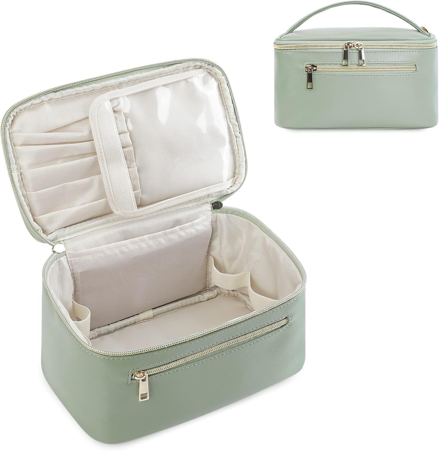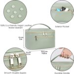 LOVE LOVE BELOVED Makeup Bag, Travel Cosmetic Bags with Brush Compartment, Large Portable Make Up Bag with Handle PU Leather Water-Resistant Makeup Organizer Case for Women (Green)