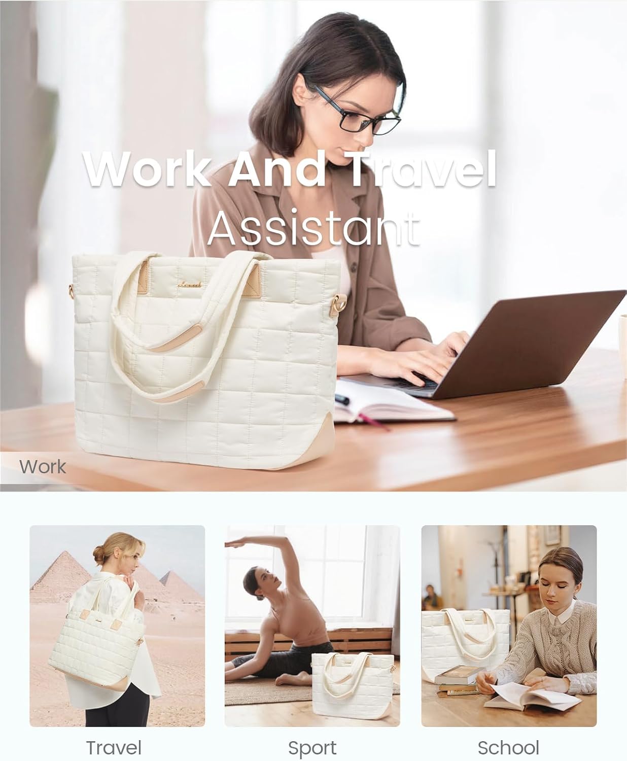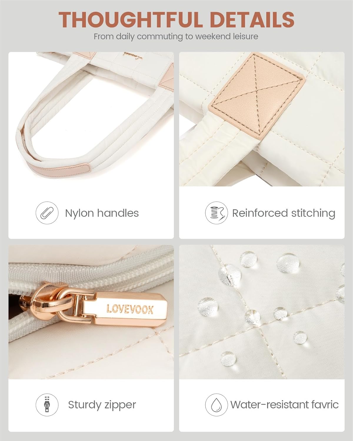 LOVEVOOK Tote Bag for Women, Large Puffer Tote Bag with Zipper Quilted Light Work Bag