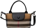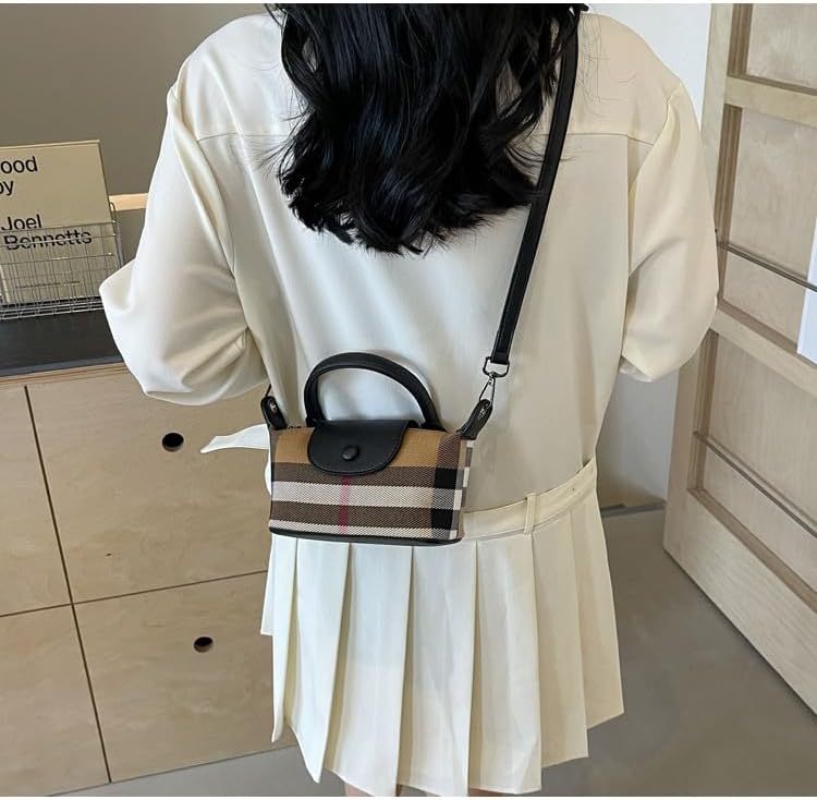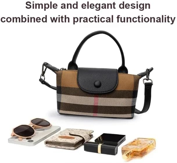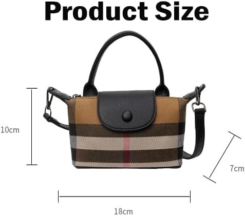 Luxury Plaid Printed Women’s Handbag, Canvas and Leather Mini Contrasting Colors Satchel with Top Handle, Waterproof and Classic Rectangular Shoulder Bag for Travel Daily Life