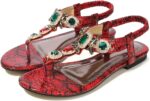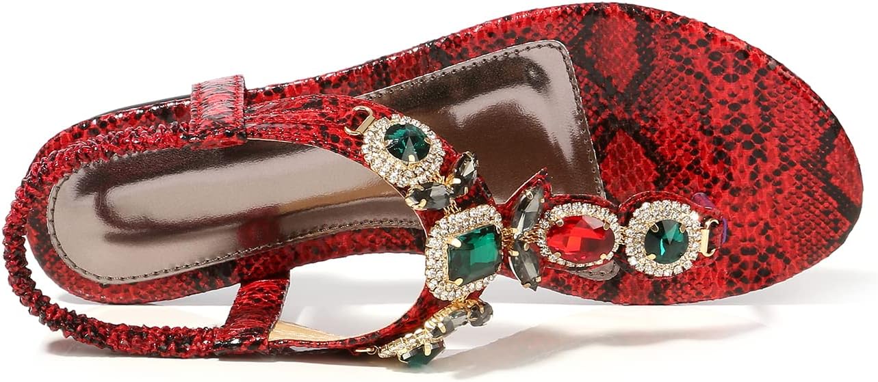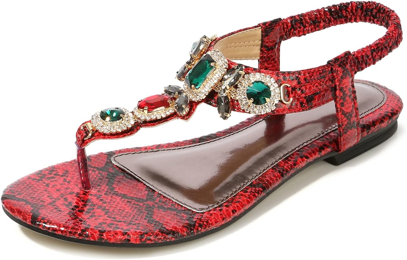 MACHSWON Women’s Summer Sandals Casual Comfortable Flip Flops Beach Shoes Ankle T-Strap Sparkling Rhinestone Flat Sandals for Beach Outdoor Wedding Sandals