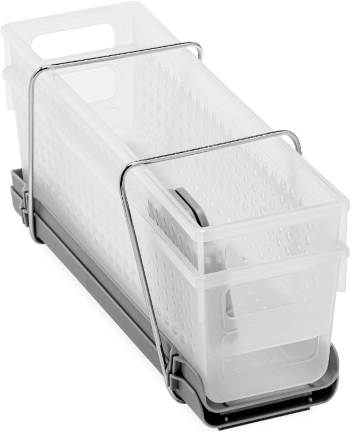 Madesmart 2-Tier Plastic Mini Multipurpose Organizer with Divided Slide-Out Storage Bins, Compact Under Sink and Cabinet Organizer Rack, Frost