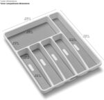 DRAWER SILVERWARE TRAY: A six-compartment tray that fits in most kitchen drawers to help with silverware and utensil organization