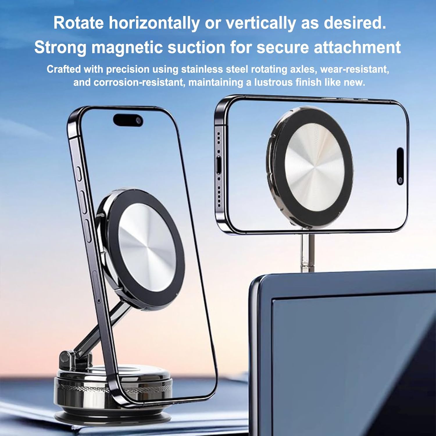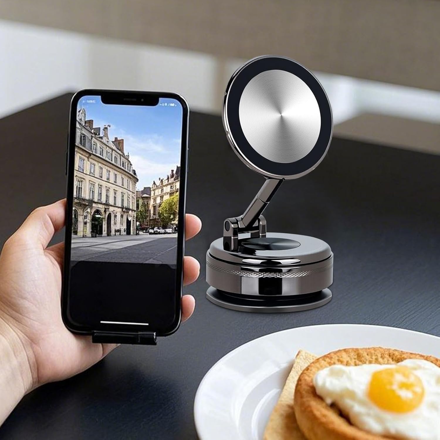Stable Bump-Proof Design: Engineered with a strong magnetic mechanism, it secures compatible phones firmly in place, offering seamless 360-degree rotation and reliable attachment despite road bumps or vibrations