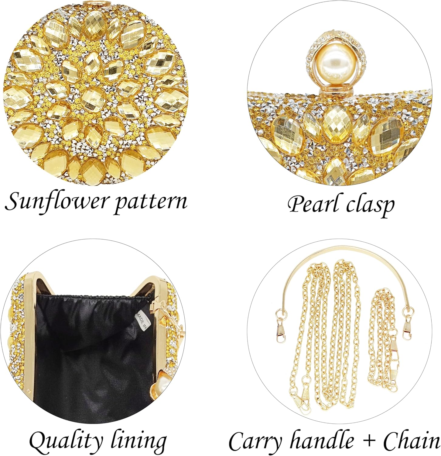 MAIRLOM Rhinestone Clutch Purses for Women Evening Wedding Formal – Round Pearl Clasp Handbag – Crystal Diamond Bag