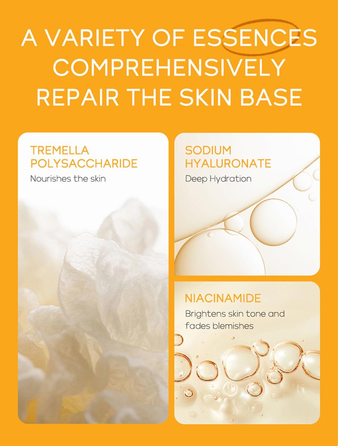 1. The facial vitamin c essence skin care set can effectively repair dry skin, improve dull skin, solve wrinkles, spots, acne marks, prevent pigmentation, shrink pores, and keep skin moist and shiny for a long time.