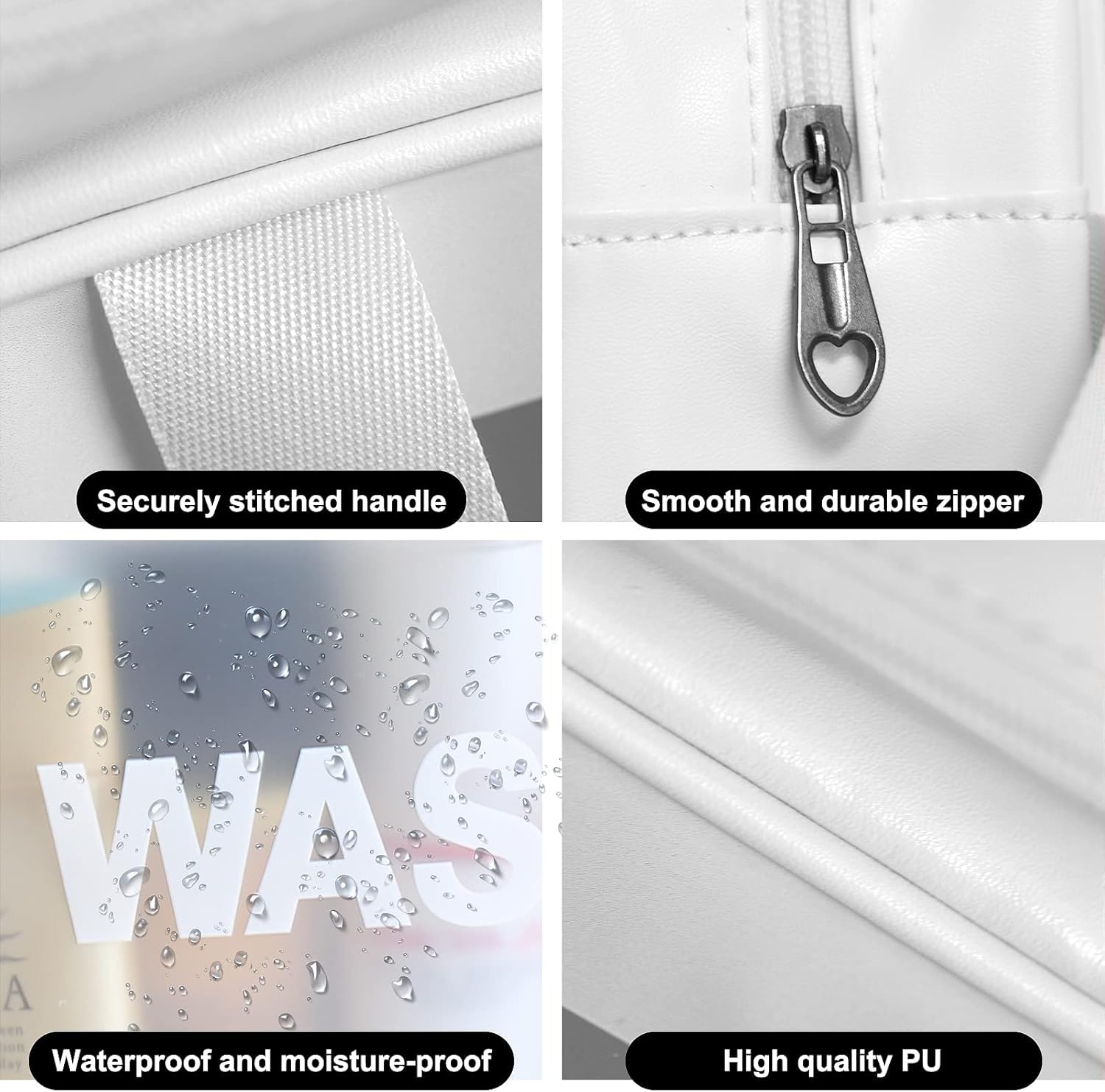 🌙Travel wash bag material: Made of soft and durable PU material and frosted textured translucent PVC material, waterproof and easy to clean, the metal zipper with the large opening on the top is very smooth and durable, the wash bag is lightweight, large capacity, easy to compress and store;
