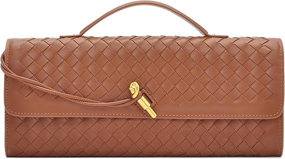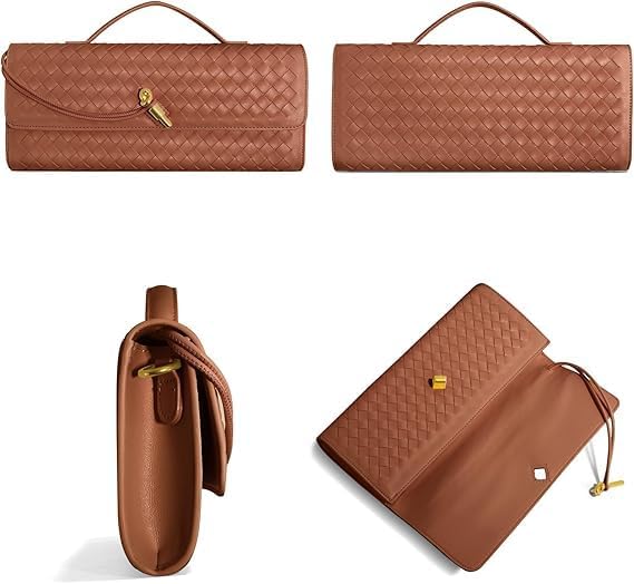 MAKINGTEC Elegant Woven Clutch Purse for Women – PU Leather Evening Bag with Removable Handle, Spacious Shoulder/Crossbody Handbag for Formal Events & Parties
