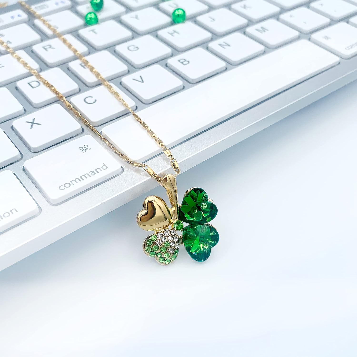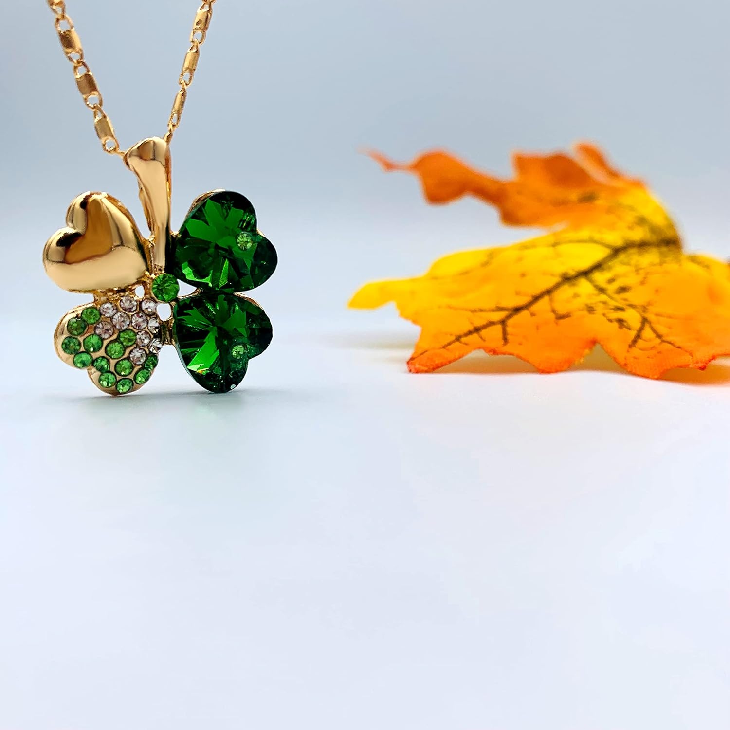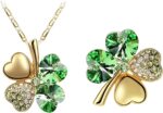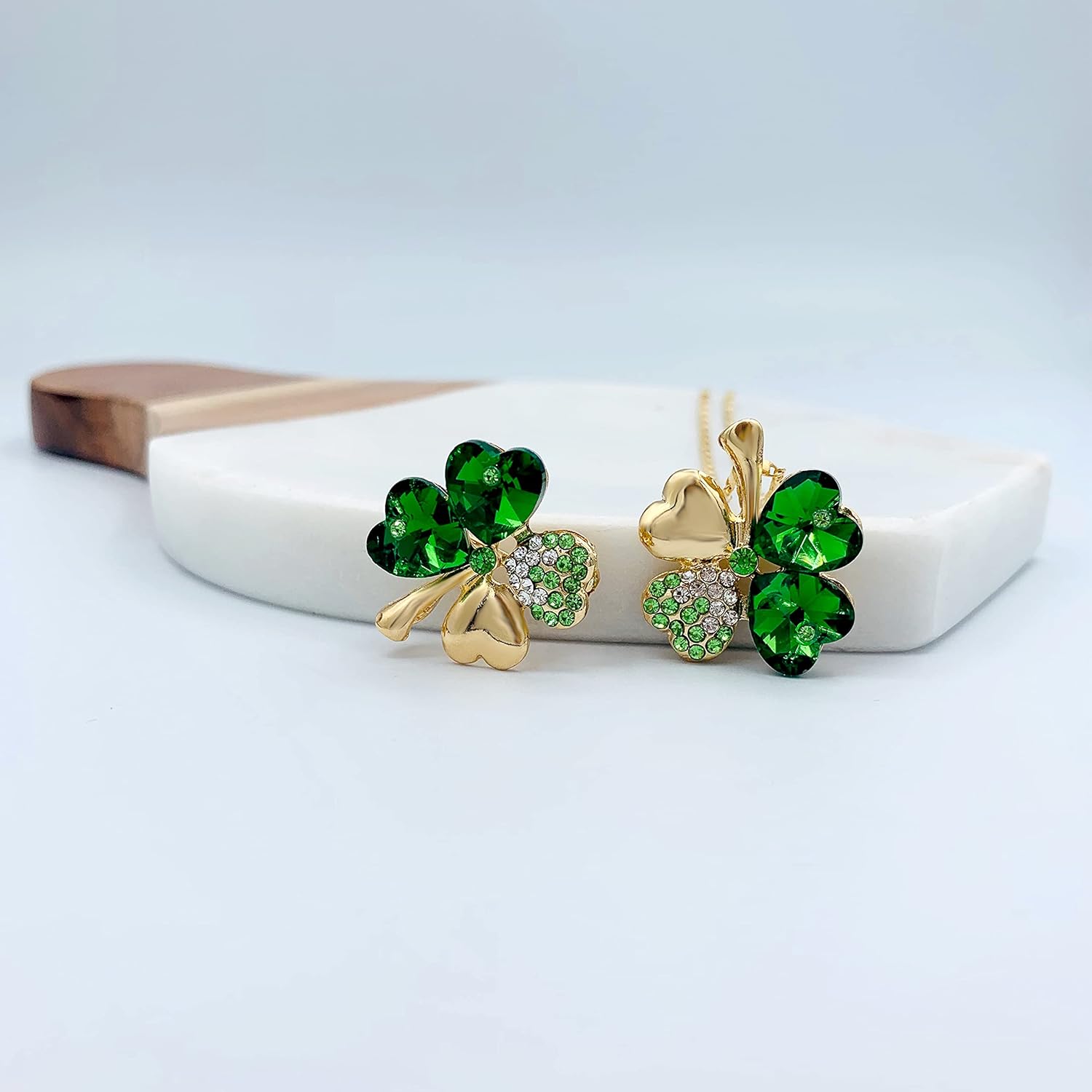 Mall of Style Four Leaf Clover Necklace – Green St.Patrick’s Day Earrings for Women – Shamrock Earrings – Irish Jewelry – Shamrock Pin Brooch – Green Clover Necklace, Earrings, Bracelet, Brooch