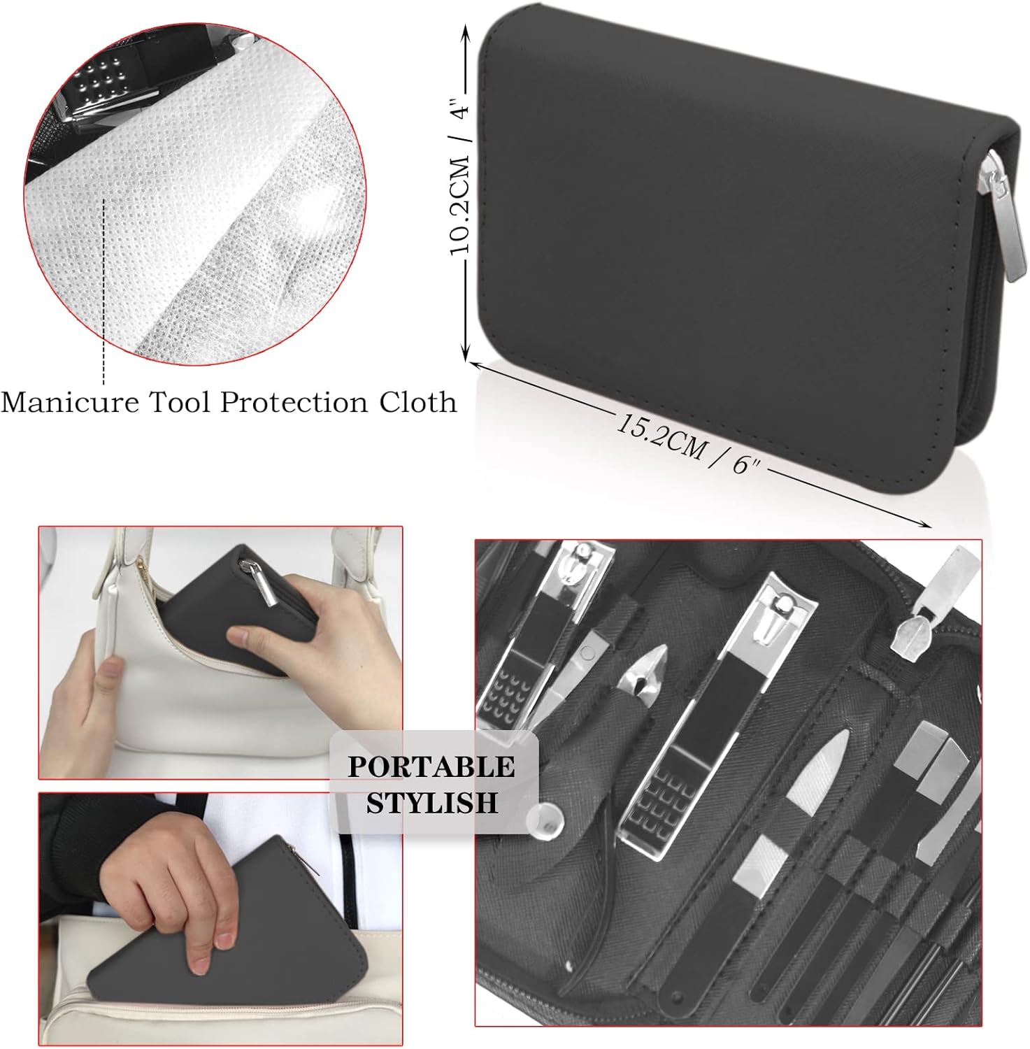 Manicure Pedicure Set -18pcs | Stainless Steel Professional Manicure Pedicure Kit Nail Clipper Set For Men Women | Nail Clippers Scissors Grooming Kit With Pu Leather Zip Case For Travel(Black)