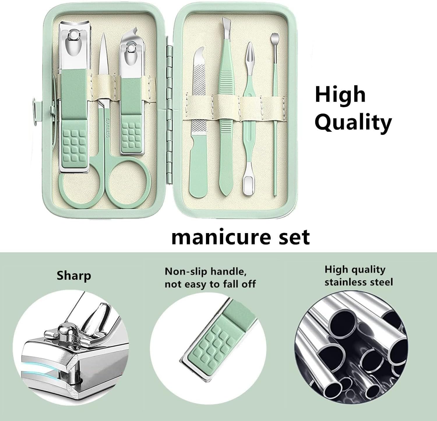 Manicure Set Nail Clipper Set Men Women Toe Finger Nail Clipper Personal Care Tools with Portable Travel Case Manicure Pedicure Tools Grooming Kit Gift for Men Women Family Friends Wife,Green