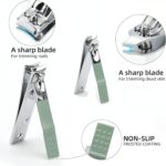 [ High Quality Material ] High quality nail grooming kit for men, boys, teenagers, seniors, women and girls. Our nail clipper blade edge has been sharpened twice. Coated with anti-rust coating, not easy to rust. With the sharp and precise blade edge, the cutting edge will not tear or split nails, even thick toe nails can be easily cut off directly. Nail clipper handle with anti-slip ripple texture lever, delivering a more comfortable user experience