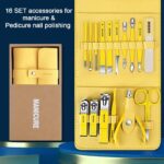 Manicure Set Pedicure Set Nail Clippers, 16 in 1 Professional Pedicure Kit Nail Scissors Grooming kit and Ear Wax Removal Tools with PU Leather Case for Travel Manicure kit Yellow