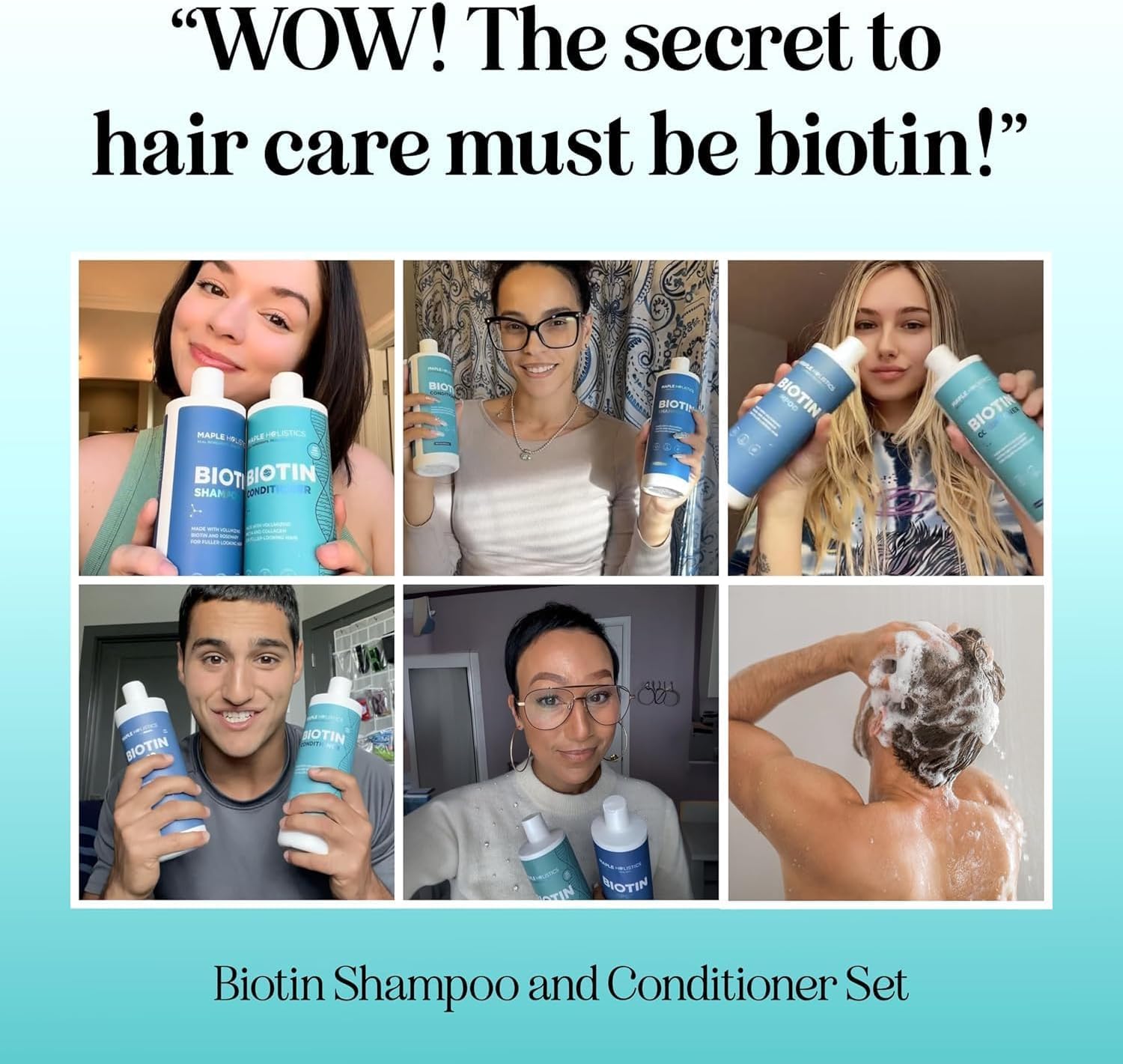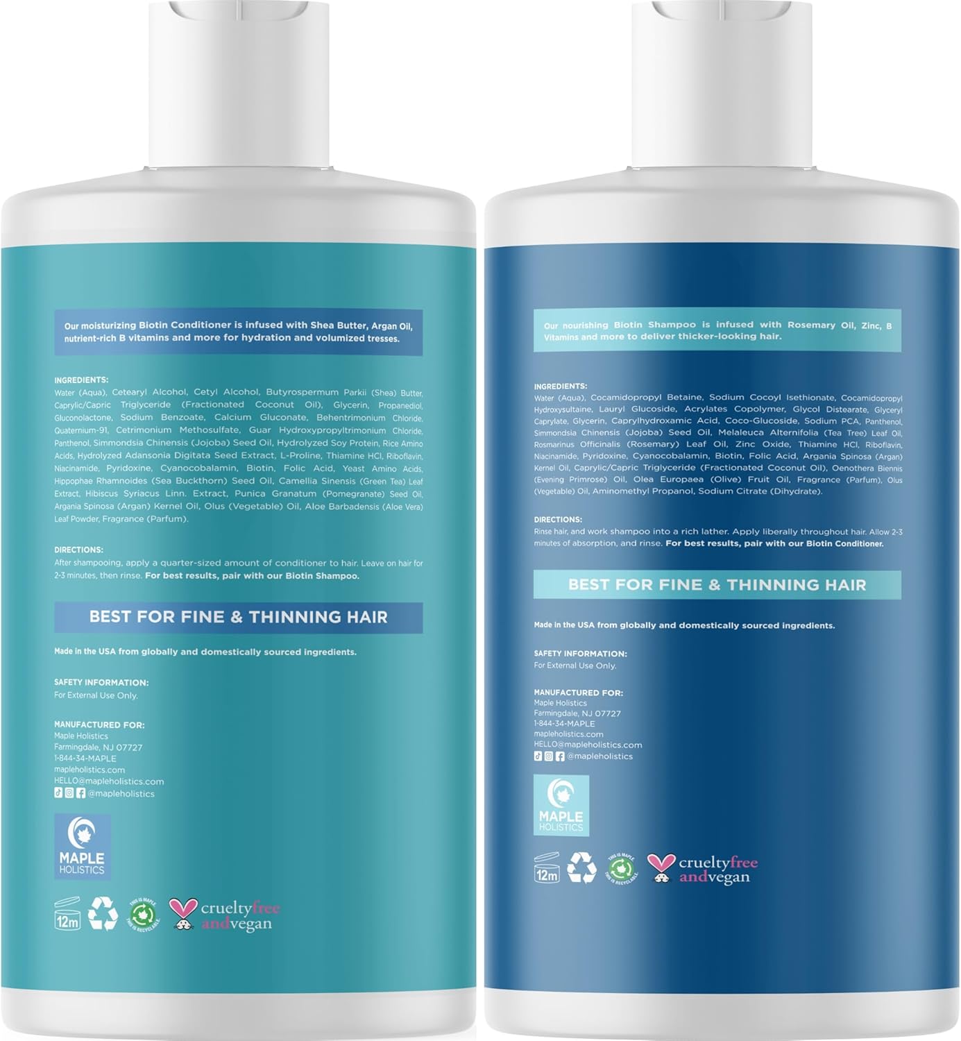 Maple Holistics Volumizing Biotin Shampoo and Conditioner Set – Sulfate Free Biotin Hair Conditioner for Dry Damaged Hair – (16 Fl Oz (Pack of 2))