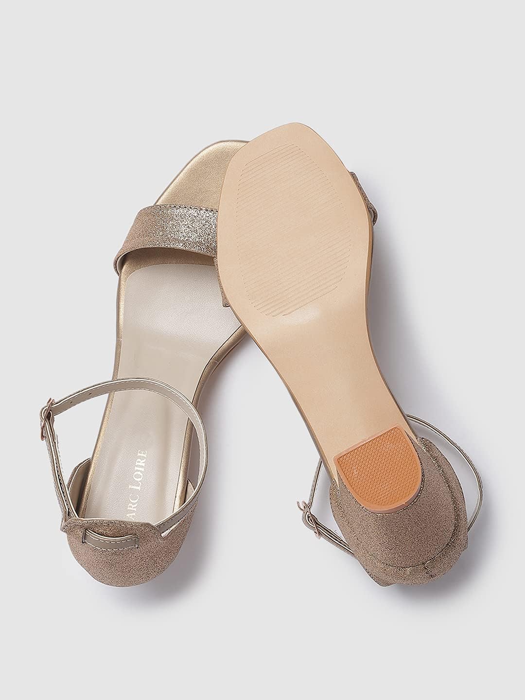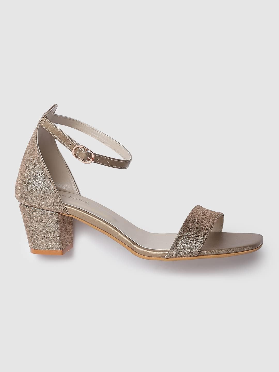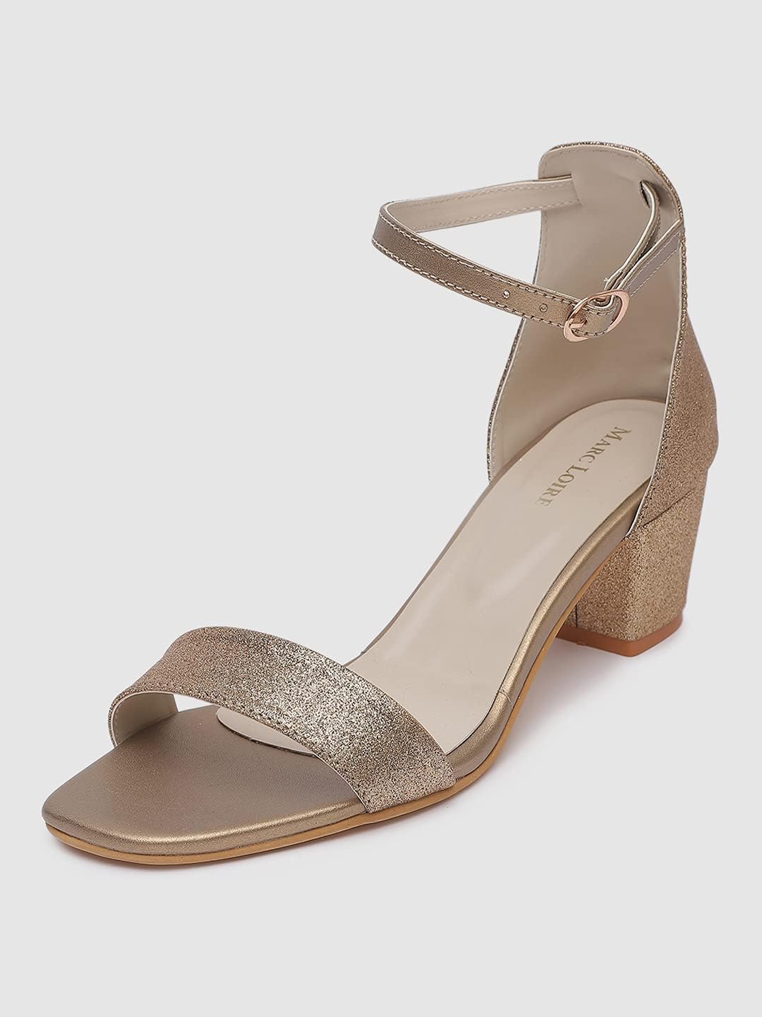 Marc Loire Women’s Faux Leather Shimmer Open Toe Comfortable Block Heel Sandals for Casual Wear, Party and Formal Occasions.