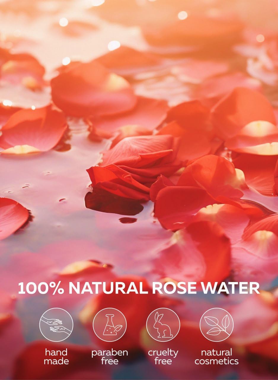 Pure Damascena Rose Water – Sourced from the heart of the Bulgarian Rose Valley; paraben-free and perfume-free to naturally combat skin imperfections.