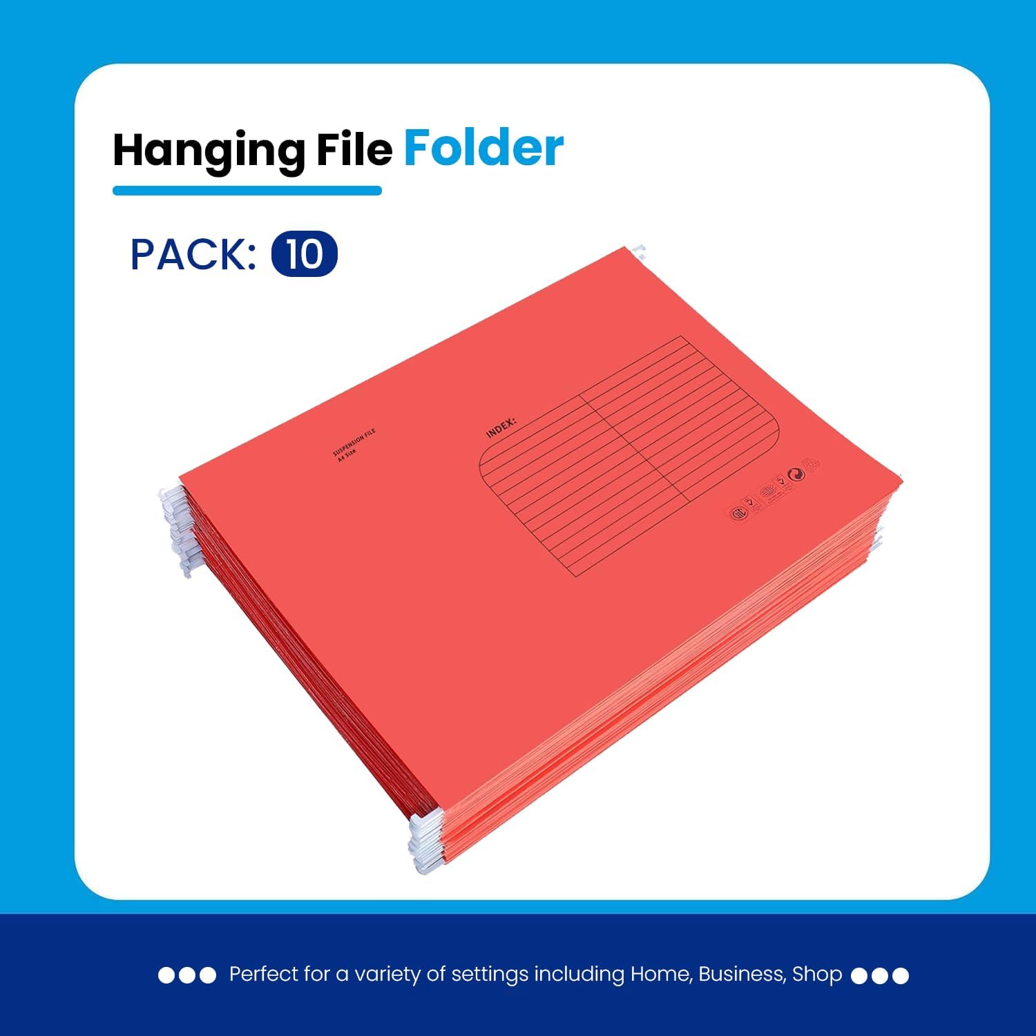 MARKQ Hanging File Folders, Pack of 10 Red Suspension Files for Filing Cabinet Folders School Home Work Office Organization