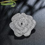 MEEDOZ White Gold/Rose Gold Plated Women’s Crystal Rhinestone Rose Flower Shape Brooch Pins for Women Lady