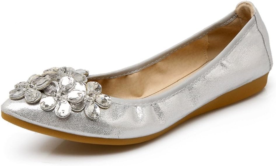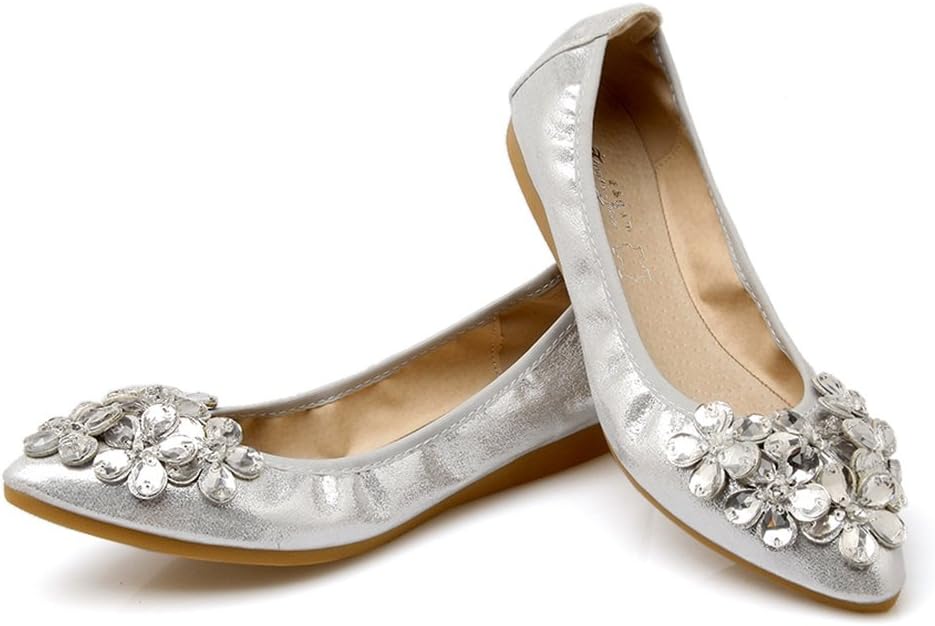 Meeshine Womens Foldable Soft Pointed Toe Ballet Flats Rhinestone Comfort Slip on Flat Shoes