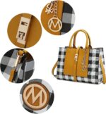 NOTICE: This designer bag is part of the MKF Collection by Mia K. Farrow MATERIAL: Made with high quality vegan leather Non-lined FEATURE: Designed with luxurious gold tone hardware A turn lock closure Decorative M keychain Metal feet to keep bag upright position Slightly structured silhouette Soft pebble texture Matching wallet with wristlet handle POCKETS: Interior features a spacious compartment with a mid- centered zipper pocket Wallet- features 12 card slots, a zipper pocket for coins or small essentials, and 2 full bill compartments MEASUREMENTS- 13 in L x 10.2 H x 5 in D Handle Drop- 5.5 in Wallet- 7.5 in L x 4 in H x 0.5 in D