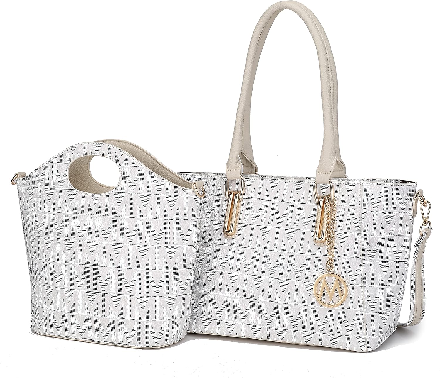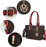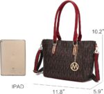 These designer handbags are part of the MKF Collection by Mia K. Farrow, they’re manufactured of high quality faux leather giving it durability for long lasting use. This stunning tote bag for women has a secure zip top closure to keep your belongings from falling. MKF Collection handbags always keep their interiors interesting, in this case this tote handbag interior features a spacious compartment with two zippered pockets and slip in pockets. The exterior features a back zippered pocket and two side slip in pockets, not to mention the exterior of designer tote bag is decorated with gold tone embellishments and a front removable gold tone enhanced MKF Collection charm. Furthermore, this tote shoulder bag has two very comfortable twin top handles that have a handle drop of 10.5 in, the measurements are 13.5 in L x 10.5 in H x 6 in D.