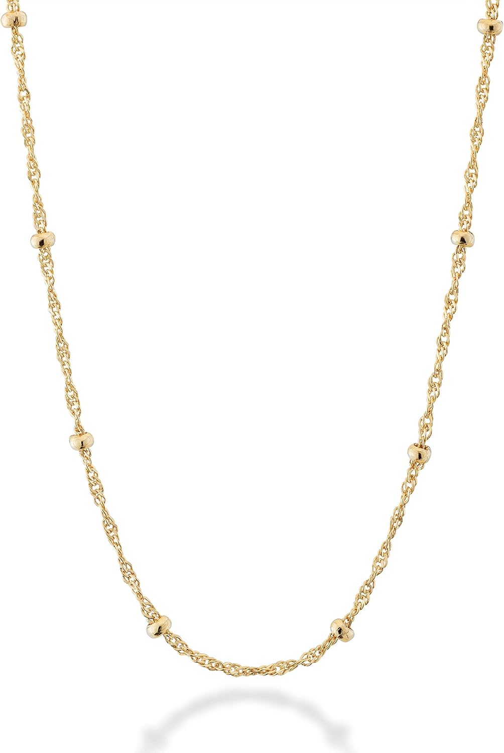 Miabella Italian 18K Gold Over Silver Singapore Bead Chain Station Necklace for Women, Made in Italy