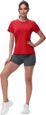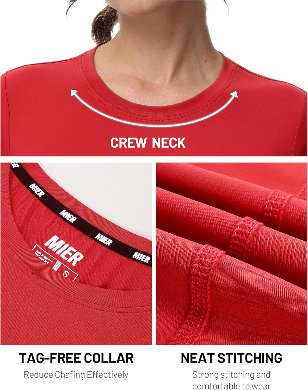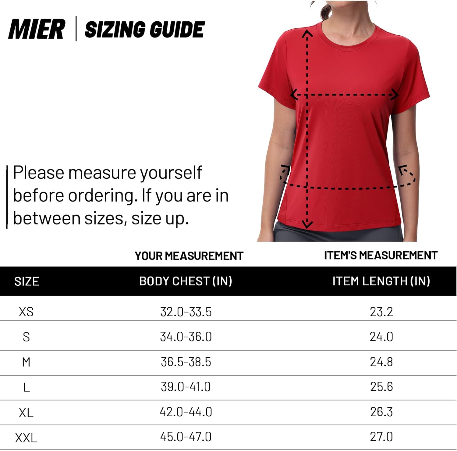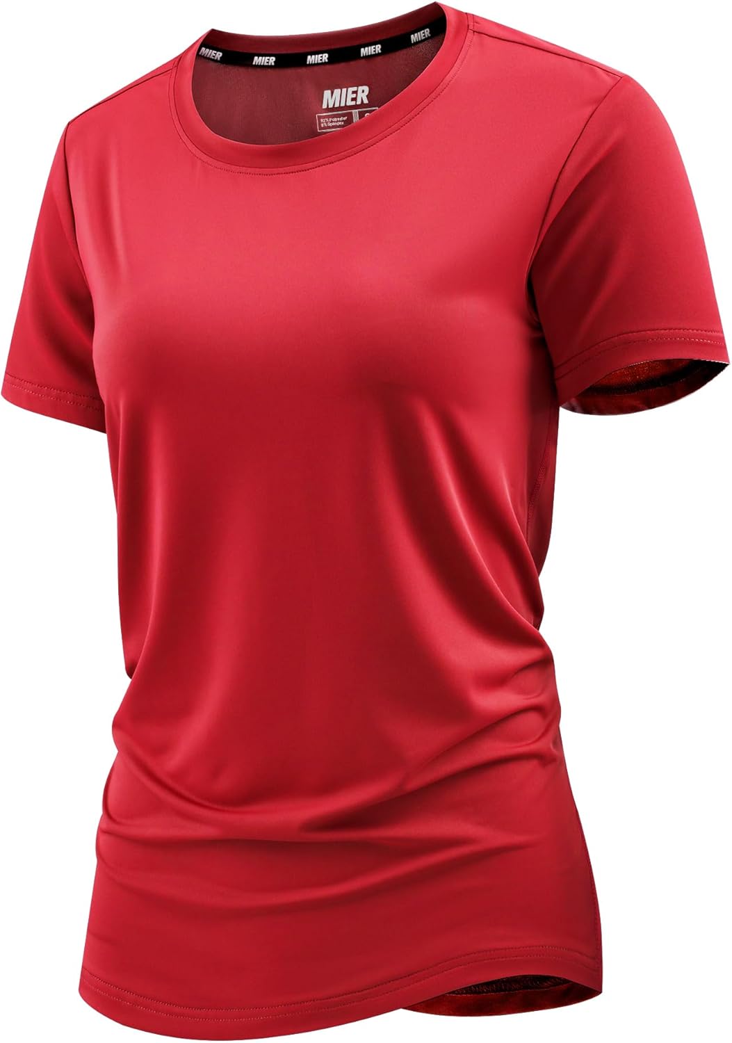 MIER Women’s Running Athletic Shirts Dry Fit Active T-Shirt Tops Short Sleeve Soft Crew Neck Gym Workout Exercise Tees