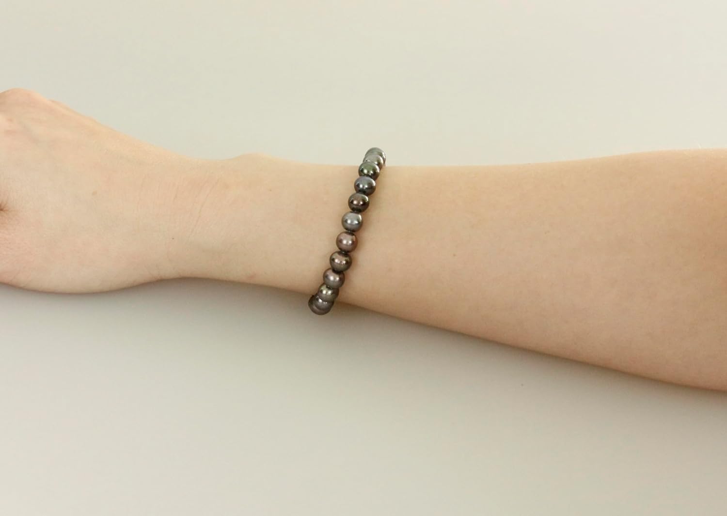 MIKURA 1St 19Cms, Bracelet, Freshwater Pearls, A Quality, Treated Black Color, 7.0-6.5MM, 18KW