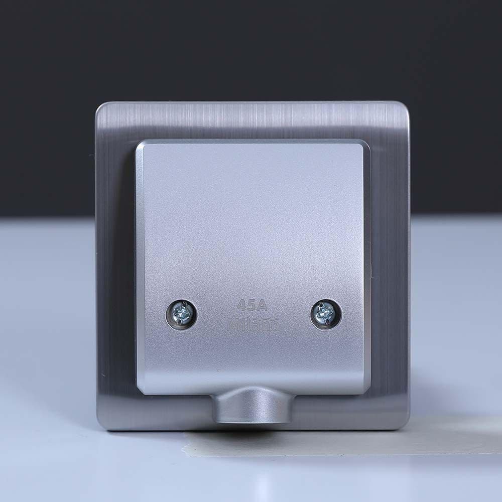 Milano 45A Flux Outlet For Modern Home Electric System – Brushed Silver Finish | Durable Metallic Electrical Socket | Indoor Lighting Fixture | Home Electronic Accessories – 8x8x4cm