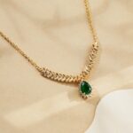 Mingee Women’s green teadrop Leaf design Necklace in Brass – 18K Gold Plated & Oxidized Design for Banquet & Special Occasions – Elegant Luxury Jewelry with Gift Box