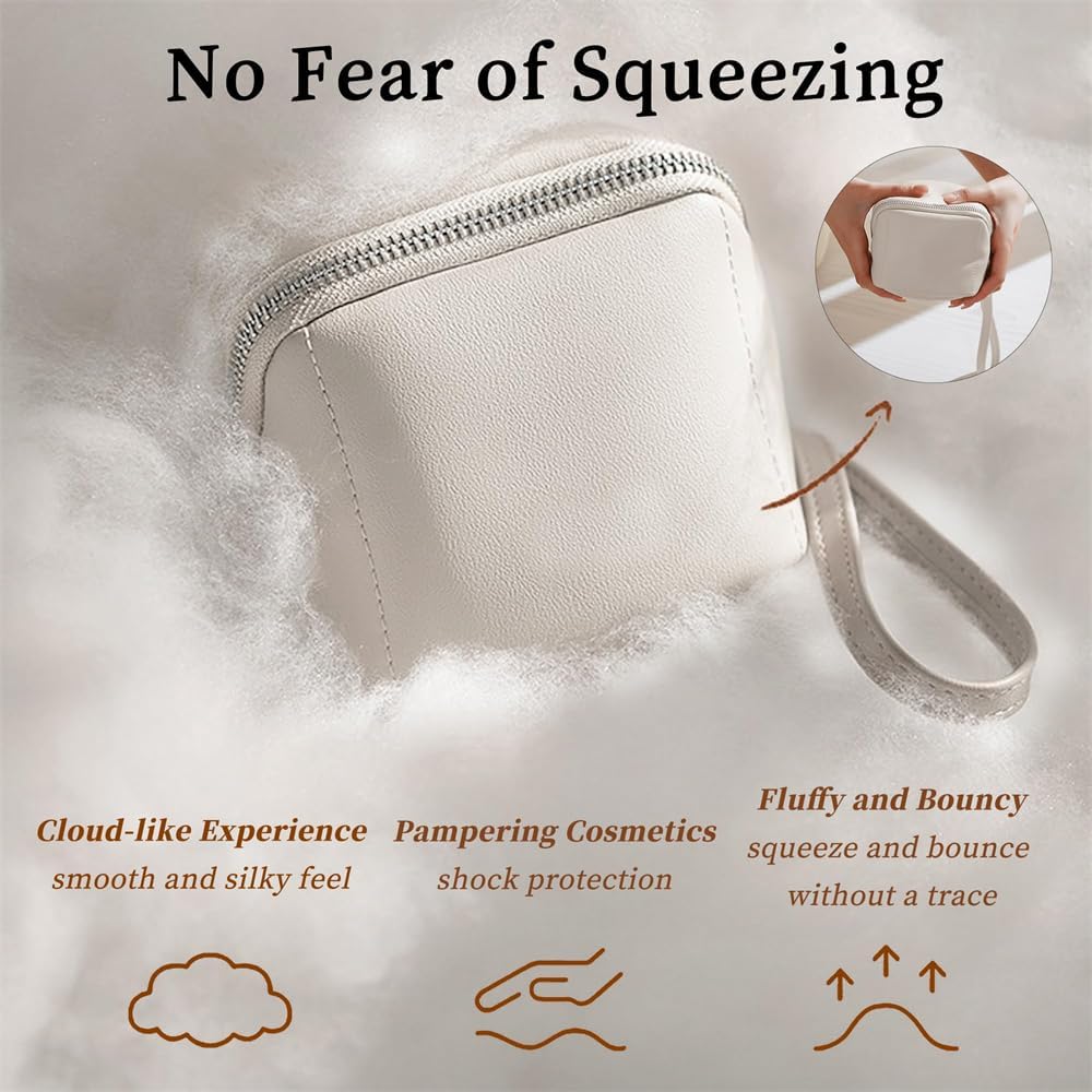 Mini Makeup Bag, AZONEE Small Pillow Cosmetic Bags, PU Portable Pouch with Compartments, Travel Essentials for Women, Soft Flat Organizer with Zipper Lanyard (White)