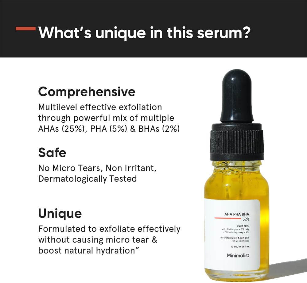 Minimalist 25% AHA + 2% BHA + 5% PHA Peeling Solution for Glowing Skin, Smooth Texture & Pore Cleansing | AHA BHA PHA Peel For Weekend Exfoliation | 10ml