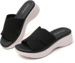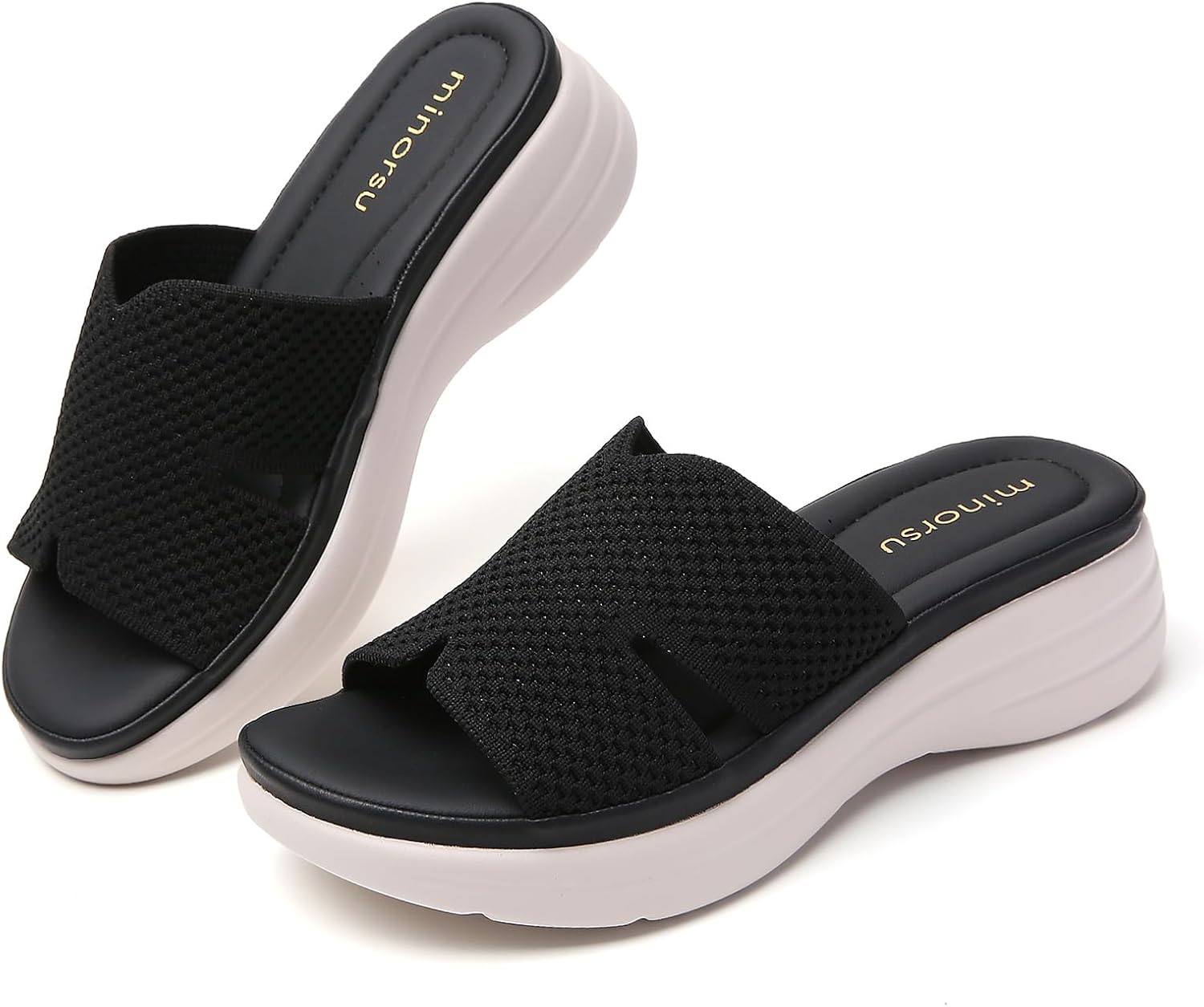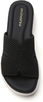 Minorsu Knit Platform Sandals for Women Comfortable Open Toe Summer Sandals Slip On Slides Shoes