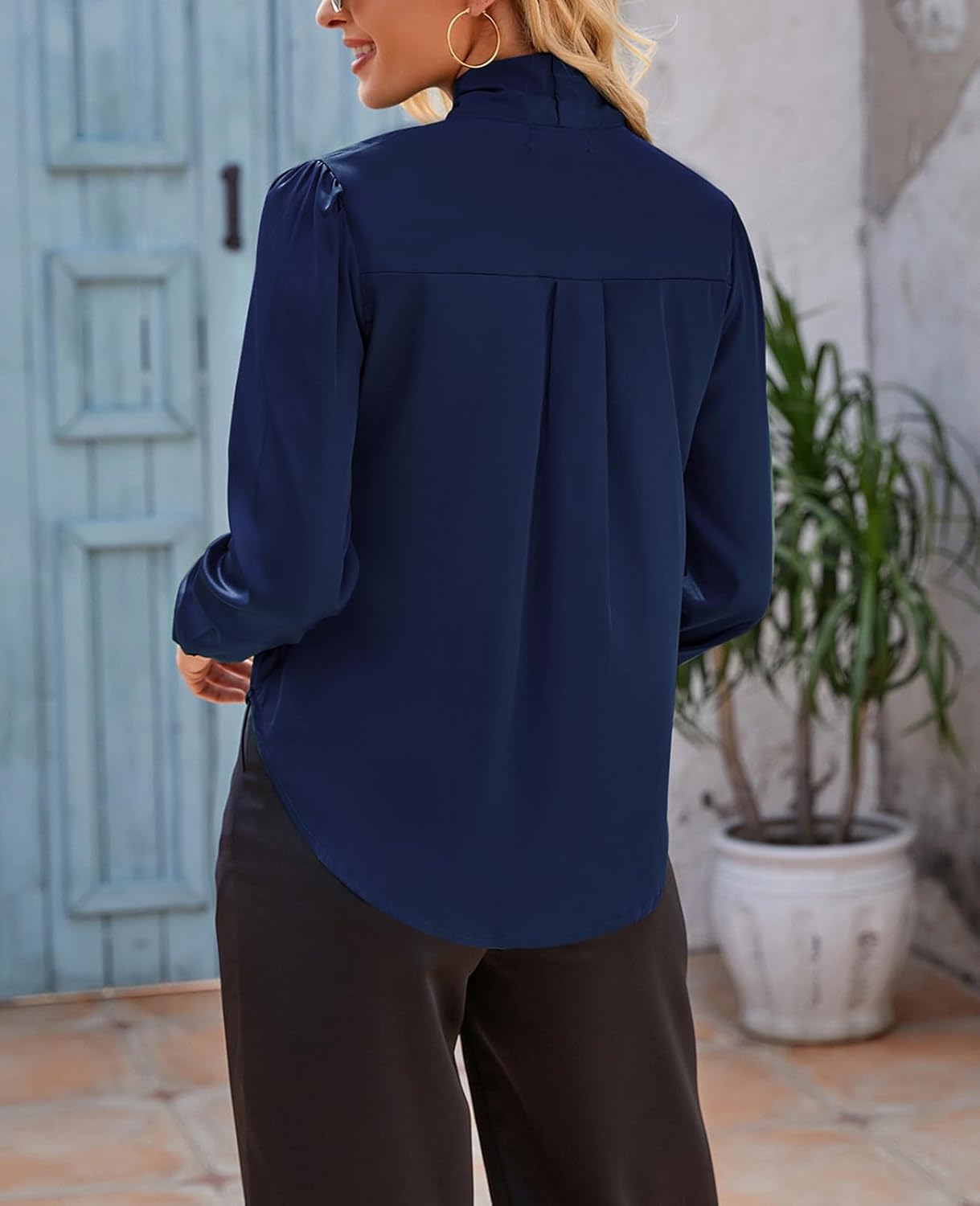 MINTLIMIT Women’s Silk Blouses Long Sleeve Satin Button Down Shirt Work Office Elegant Bow Tie Neck Silk Shirts Ladies Top