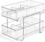 MIXDE 2 Tier Clear Organizer with Dividers, Multi-Purpose Slide-Out Storage Container, Bathroom Vanity Counter Organizing Tray, Under Sink Closet Organization, Kitchen Pantry Storage Bins