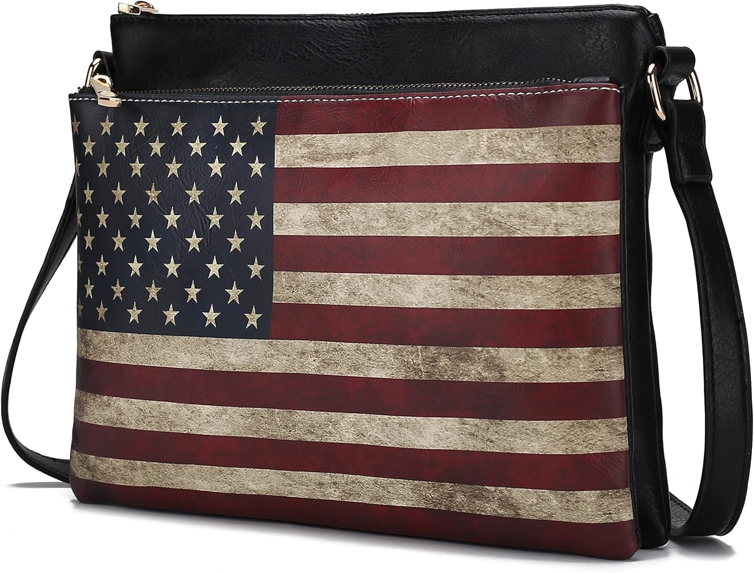 MKF Collection American Flag Design Crossbody Bag for Women, Patriotic Handbag American Pride Shoulder Bag by Mia K