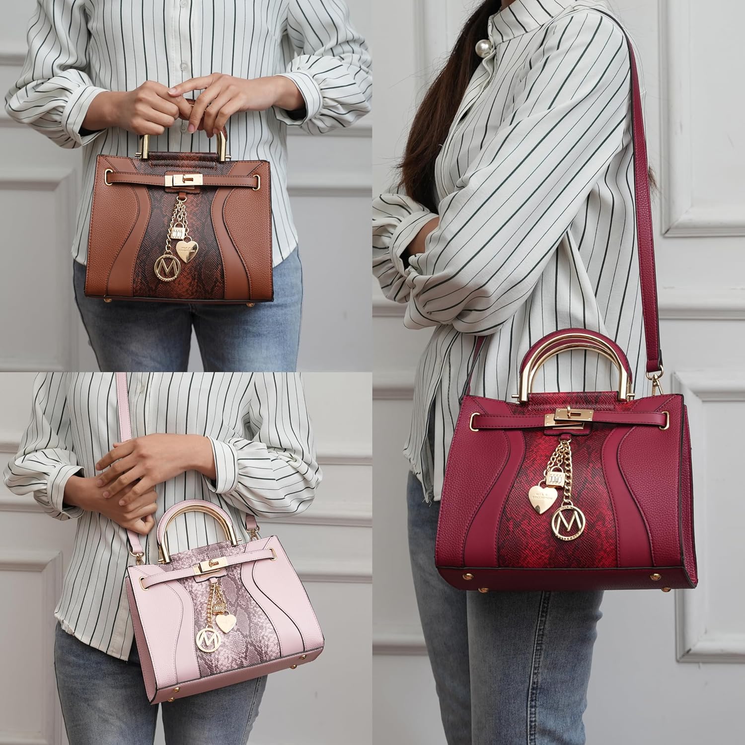 MKF Crossbody Satchel Bags for Women – PU Leather Pocketbook Handbag – Shoulder Strap, Lady Top Handles Purse