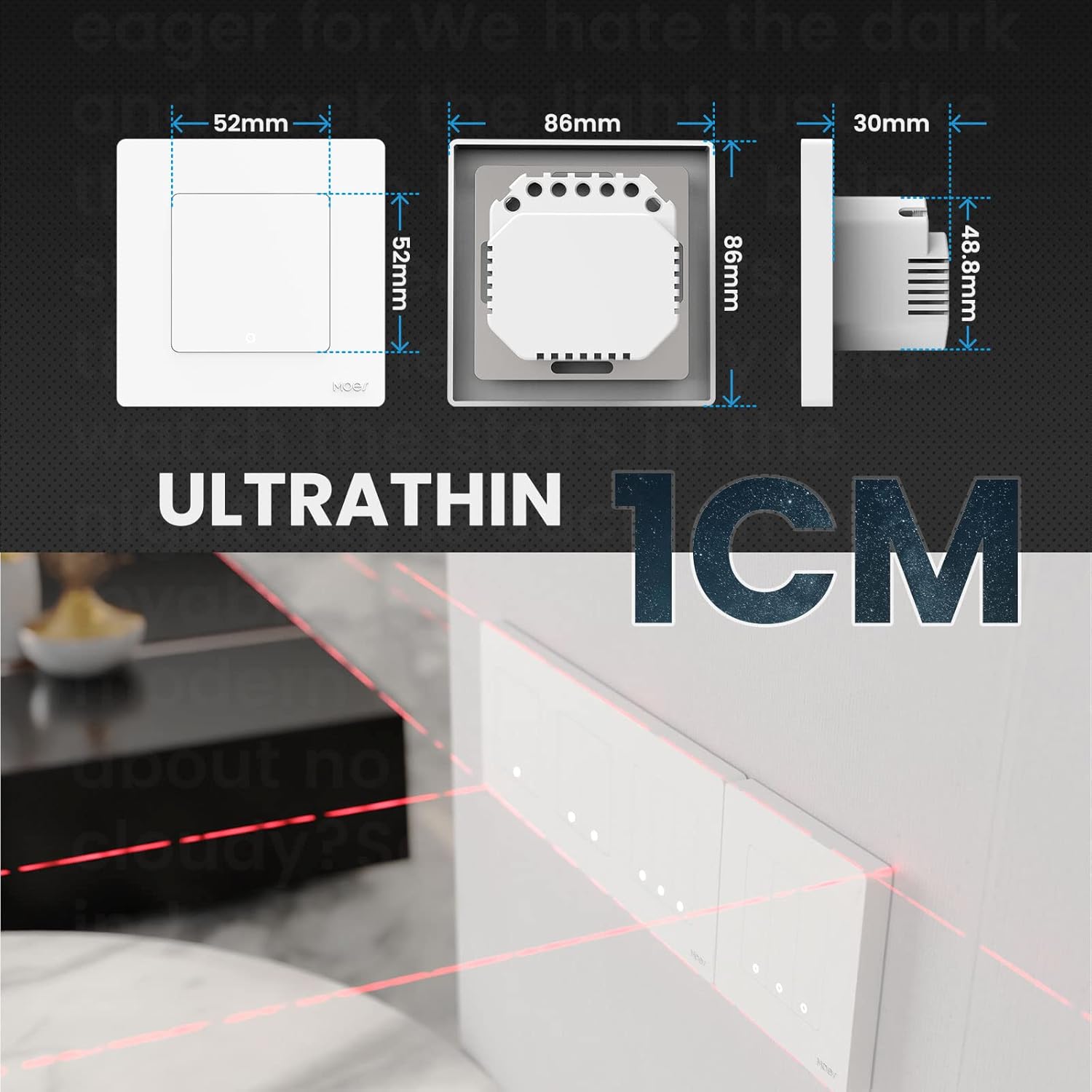 【Star Ring Design】The switch has been upgraded in appearance and thickness, with a slim front panel of approximately 8 mm in thickness and a consistent height. The star ring halo on the switch is used for backlighting to indicate the position and when the switch is turned on it simply behaves as a bright illuminated effect of the starry sky. Made from high quality PVC material for safety and longevity.