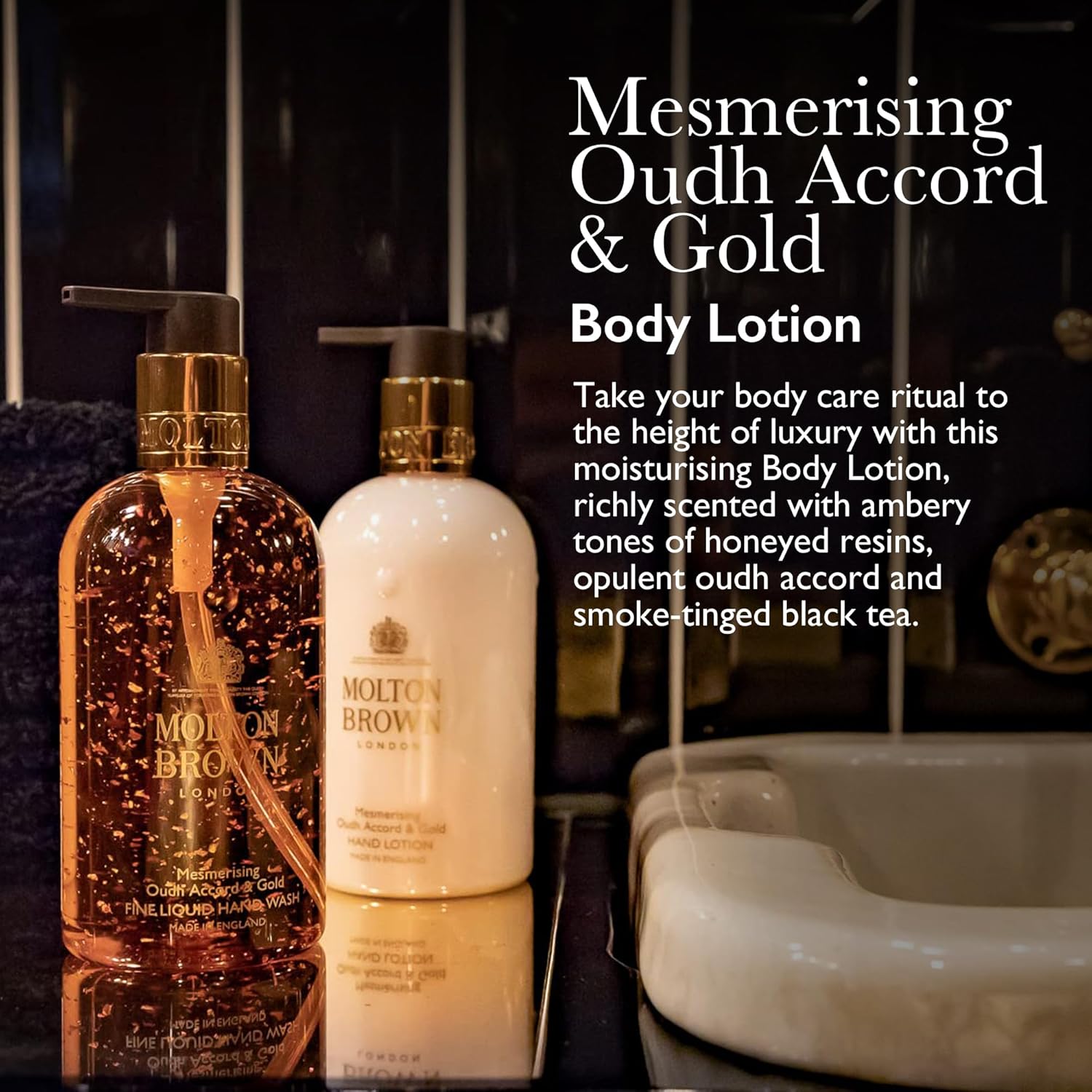 A luxuriously rich body lotion, enriched with oudh accord, cinnamon leaf and golden honey