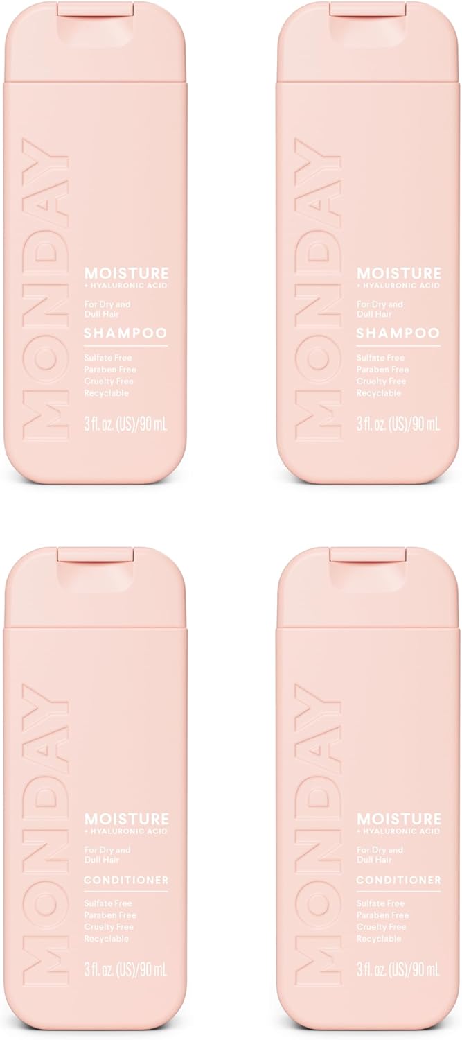 Monday Haircare Moisture Shampoo & Conditioner Travel Pack – 3 oz, 90 ML Travel Kit (2 x Shampoo, 2 x Conditioner)